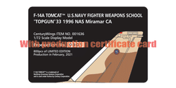 F-14A, US NAVY FIGHTER WEAPONS SCHOOL "TOPGUN" 1996 NAS Miramar CA