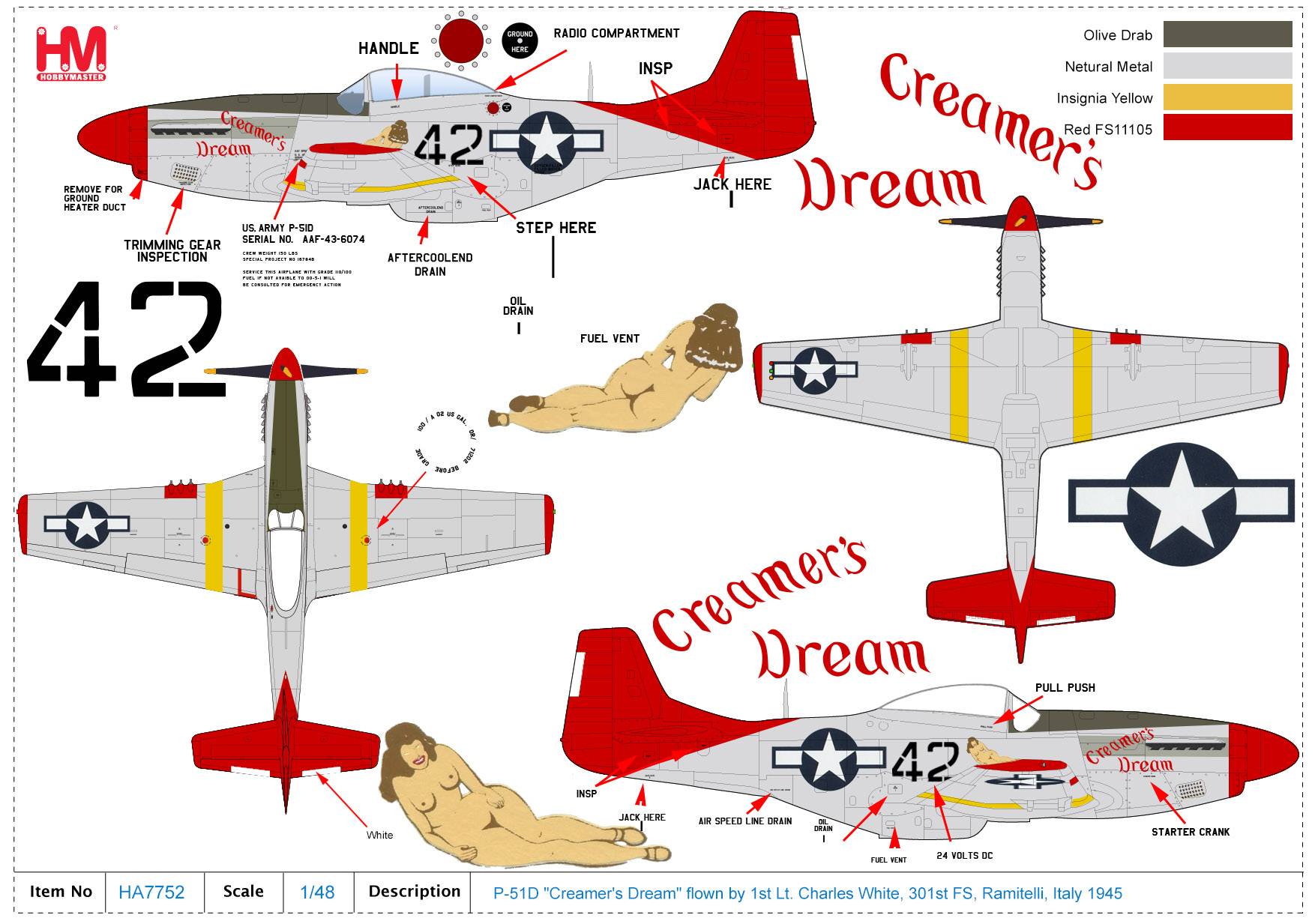 1/48 P-51D CREAMERS DREAM CHARLES WHITE 301ST FS RAMITELLI HA7752 - BROKEN TAIL