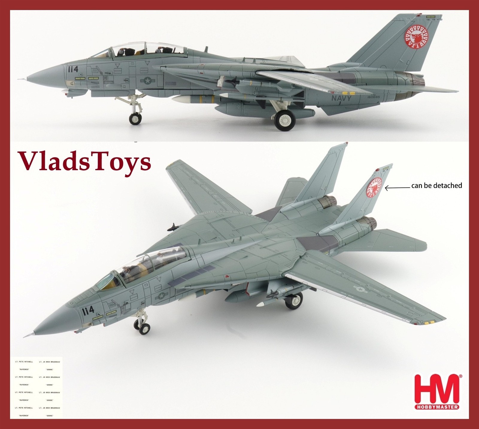 HA5260 Hobby Master F-14A Tomcat 1/72 Model #114 USN VF-1 w/Decal Sheet