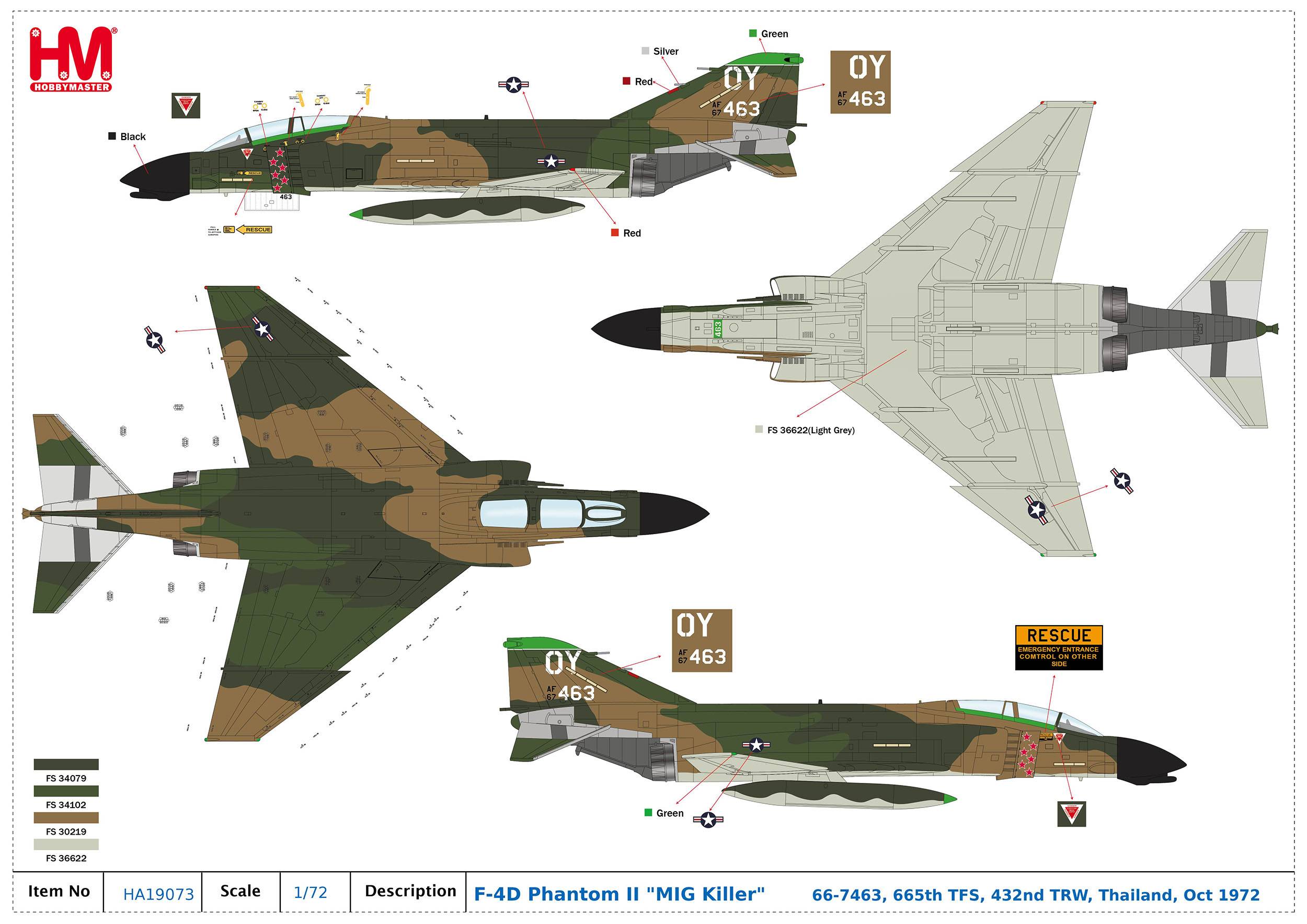 Hobby Master HA19073, F-4D Phantom II "MIG Killer" 66-7463, 665th TFS, 432, 1:72