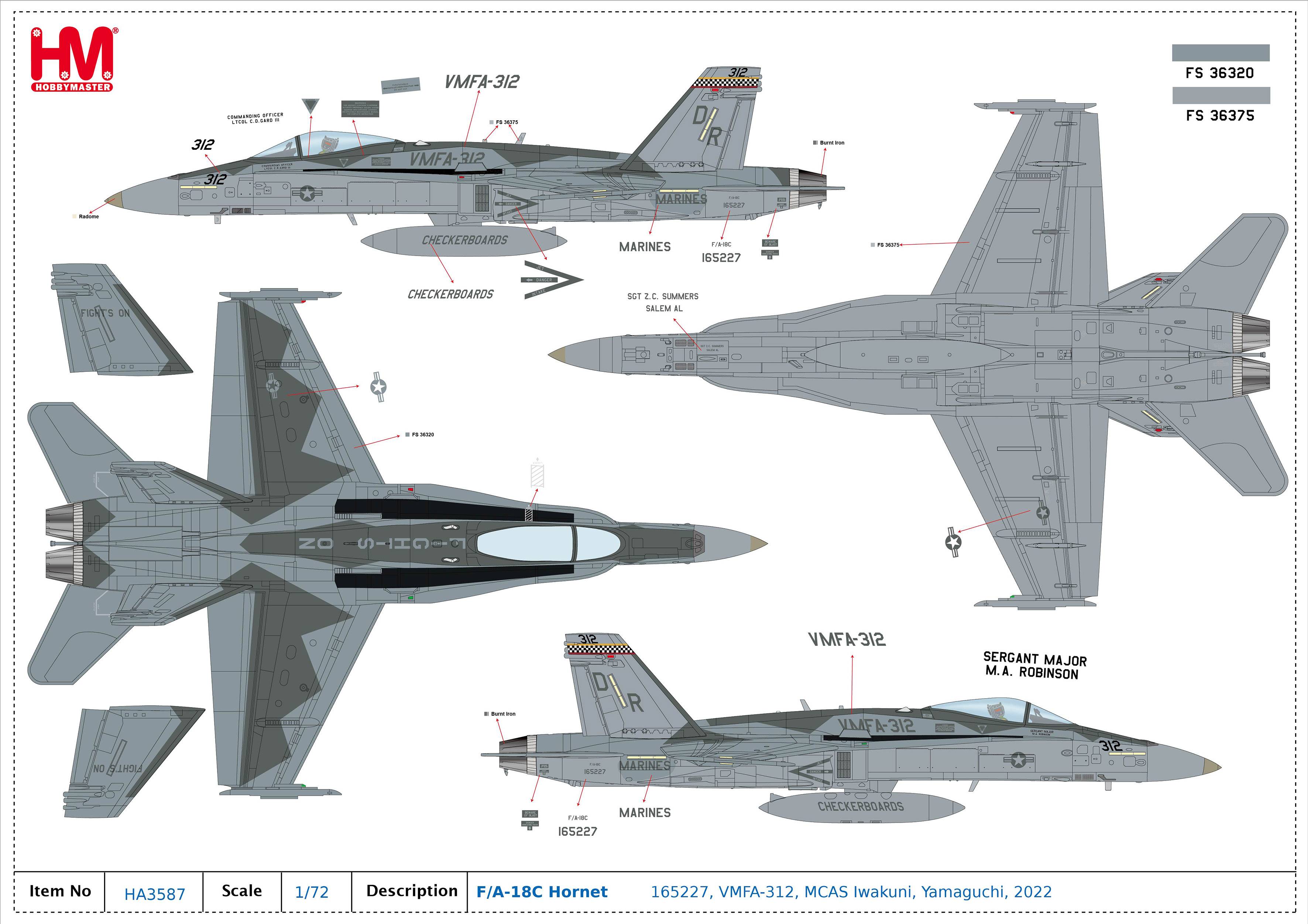 HA3587 Hobby Master F/A-18C Hornet 1/72 Model DR312 USMC VMFA-312 Checkerboards