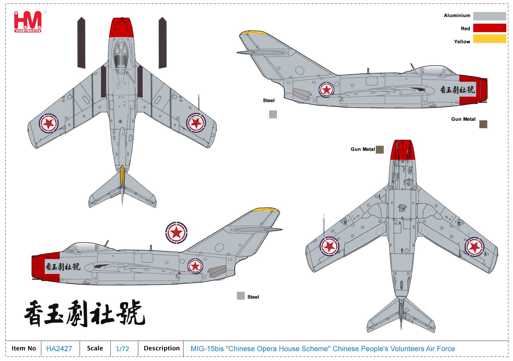 Hobby Master HA2427, MIG-15bis "Chinese Opera House Scheme" Chinese People, 1:72