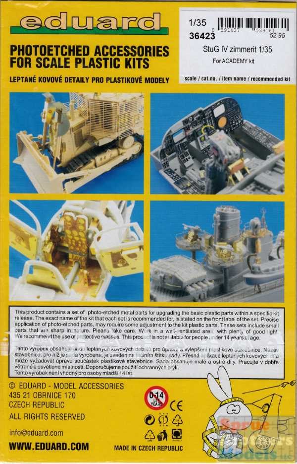 EDU36423 1:35 Eduard PE - STuG IV Zimmerit (ACA kit)