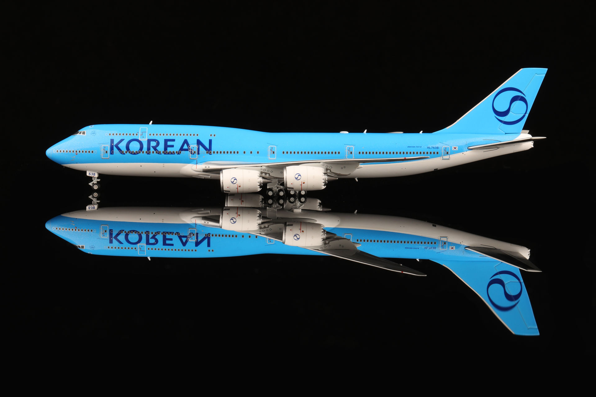 HX Model 1:400 Korean Air Boeing B747-8 Diecast Aircraft Model HL7638 Flaps Down