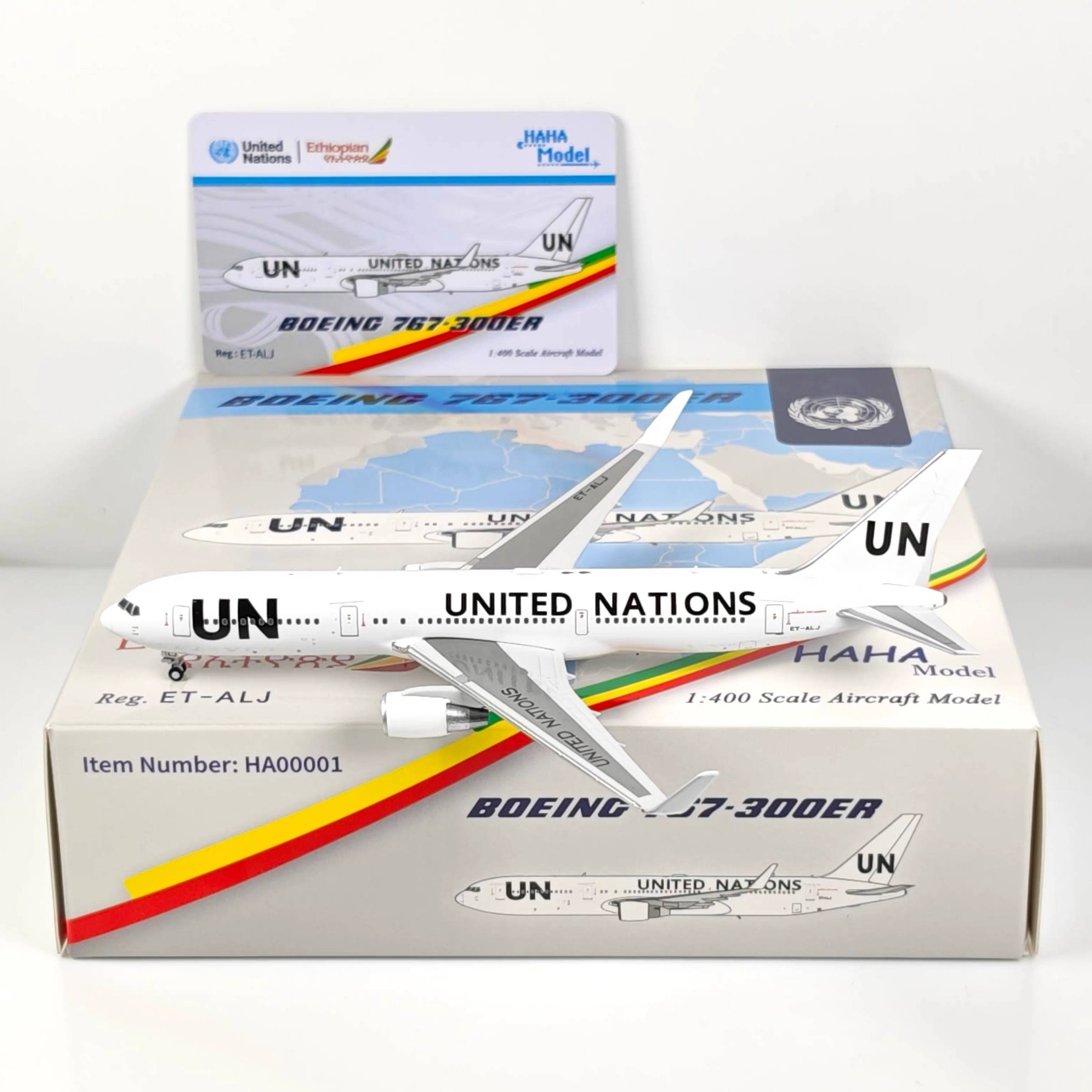 1:400 HAHA UNITED NATIONS BOEING 767-300ER Passenger Airplane Diecast Model