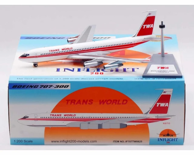 Inflight 1:200 TWA Trans World Boeing 707-320 N18710 Double Stripe IF707TW0625 w/stand