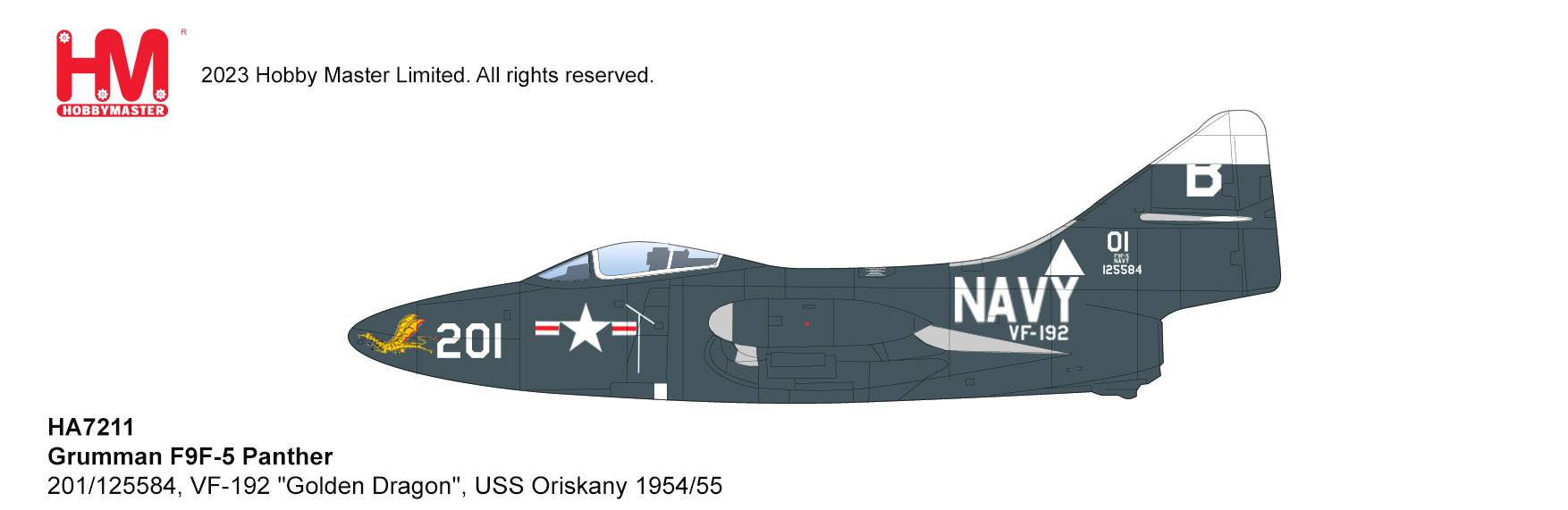 HA7211 Hobby Master F9F-5 Panther 1/48 Model Golden Dragon USN VF-192 Golden