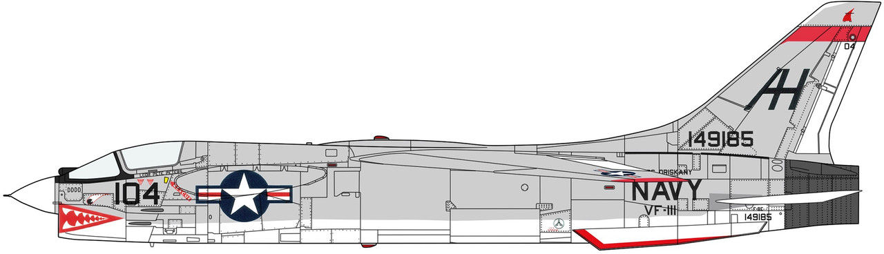 F-8E Crusader, VF-111 “Sundowners” USS Oriskany, 1966. Normal Configuration.