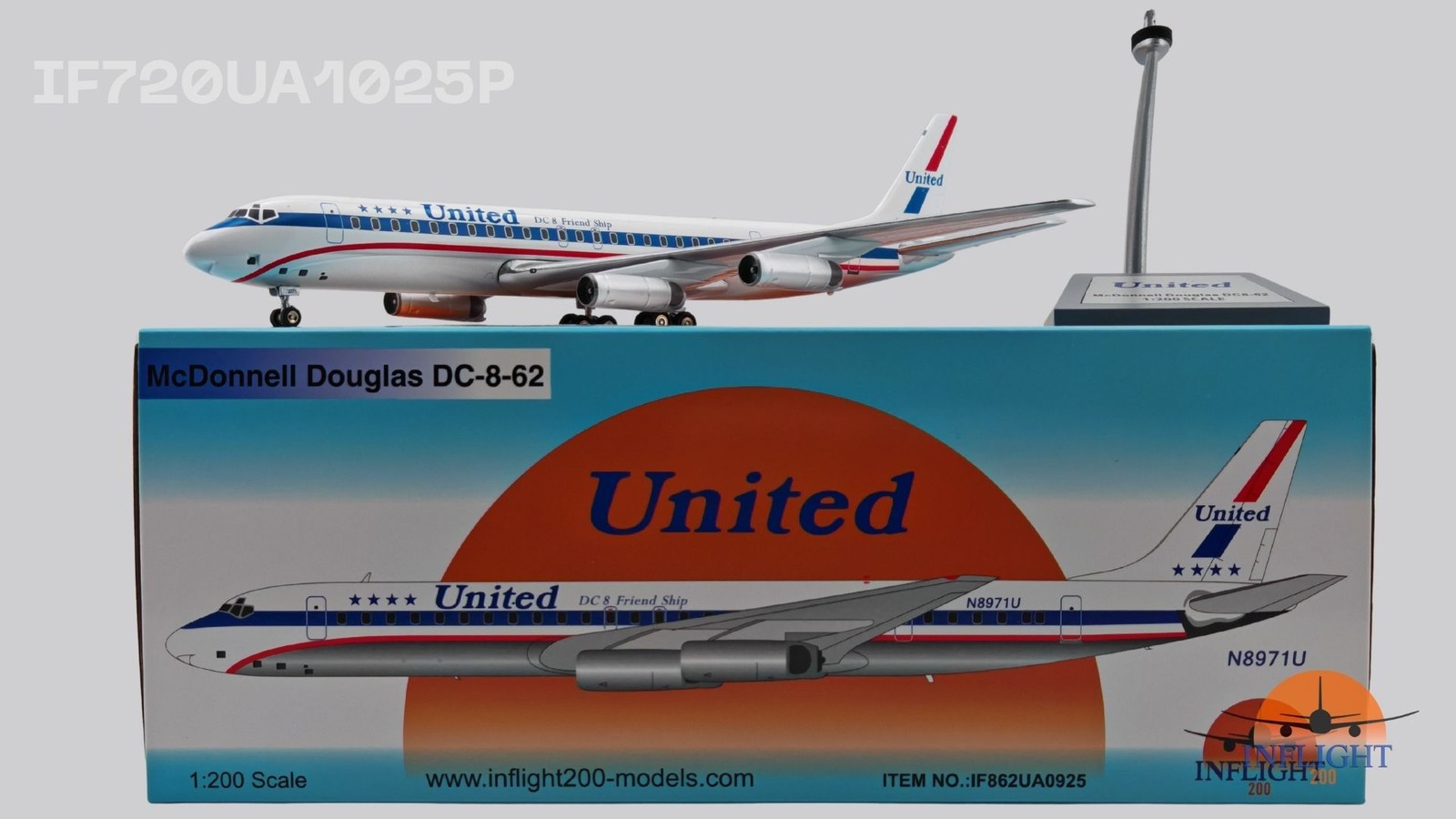 Inflight IF862UA0925 United Airlines DC-8-62 N8971U Diecast 1/200 AV Jet Model