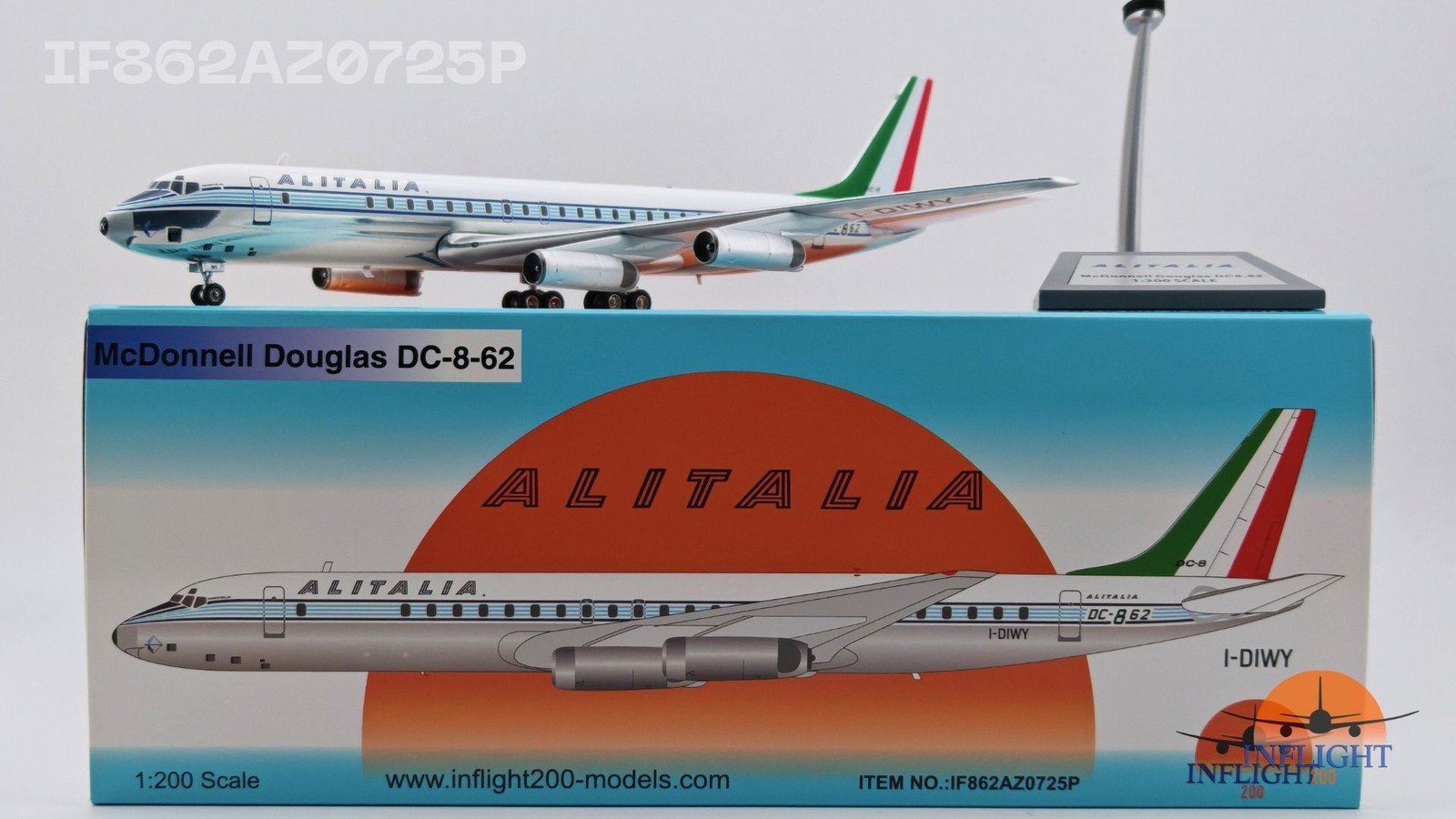 Inflight IF862AZ0725P Alitalia Douglas DC-8-62 I-DIWY Diecast 1/200 AV Jet Model