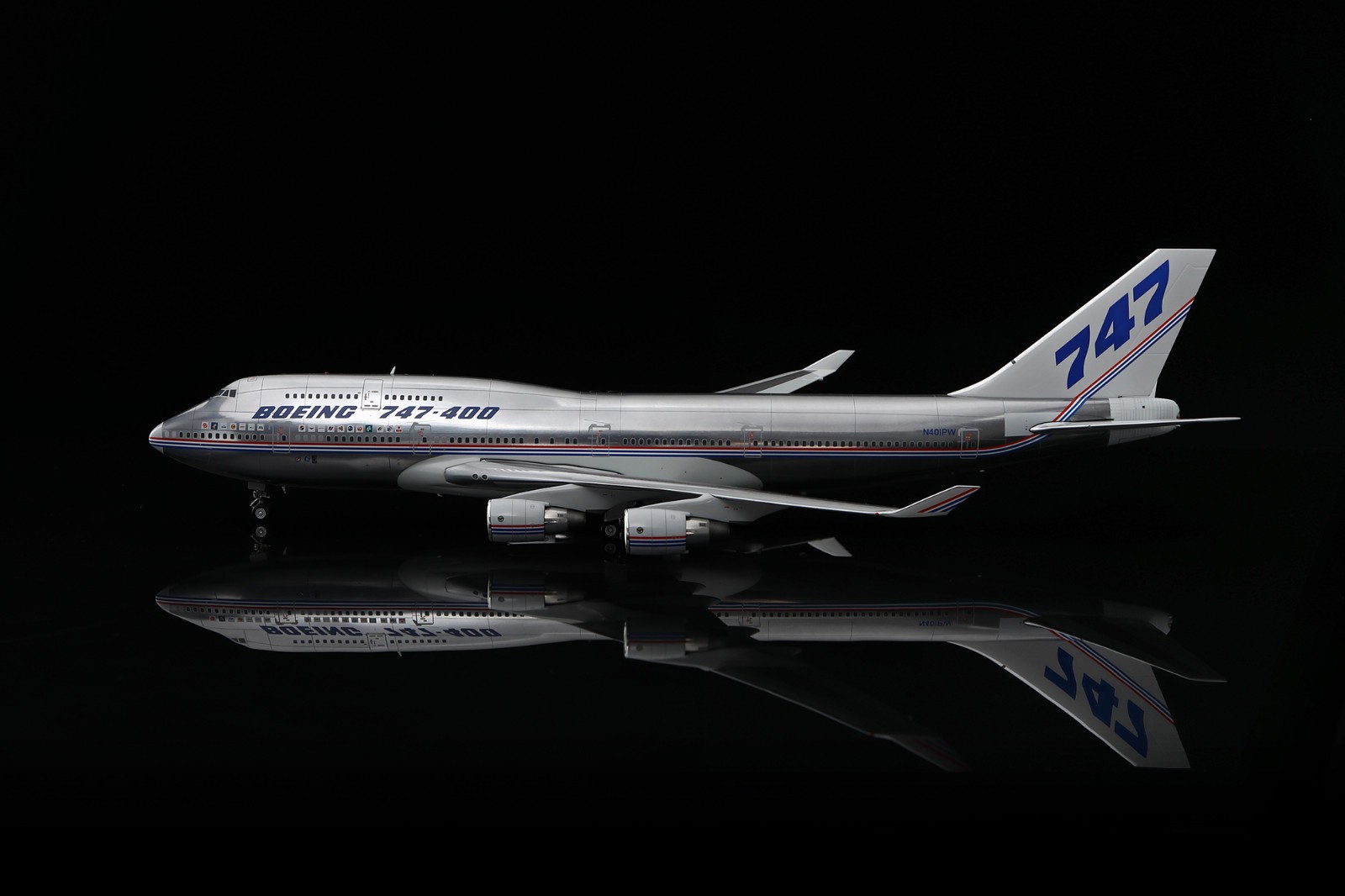 SQ Wings L2131FD 1:200 Boeing 747-400 Boeing House N401PW Polished Flaps Down