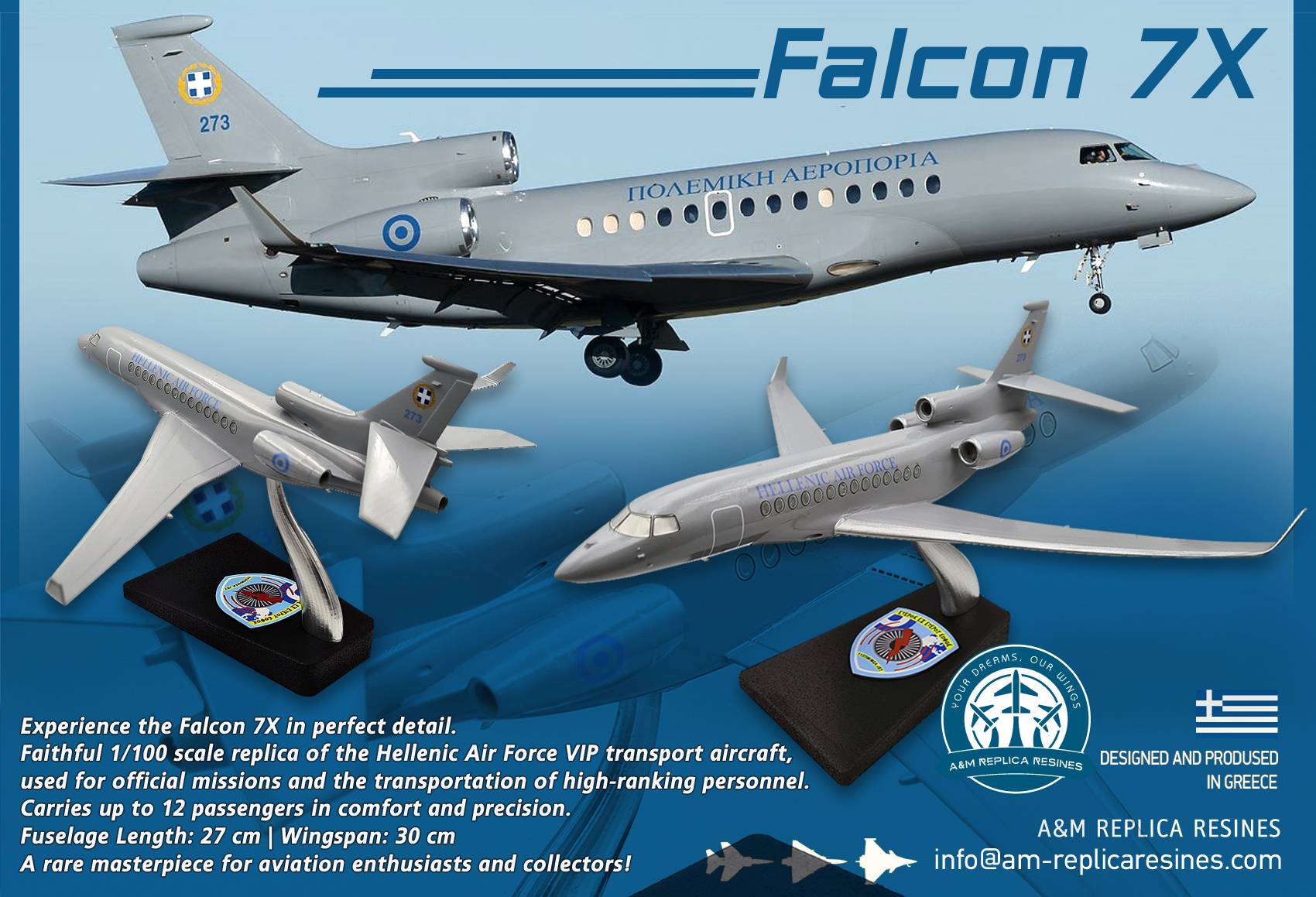 A&M Replica Resines 1:100 Hellenic Air Force Dassault Falcon 7X F7X_AM25 | MADb